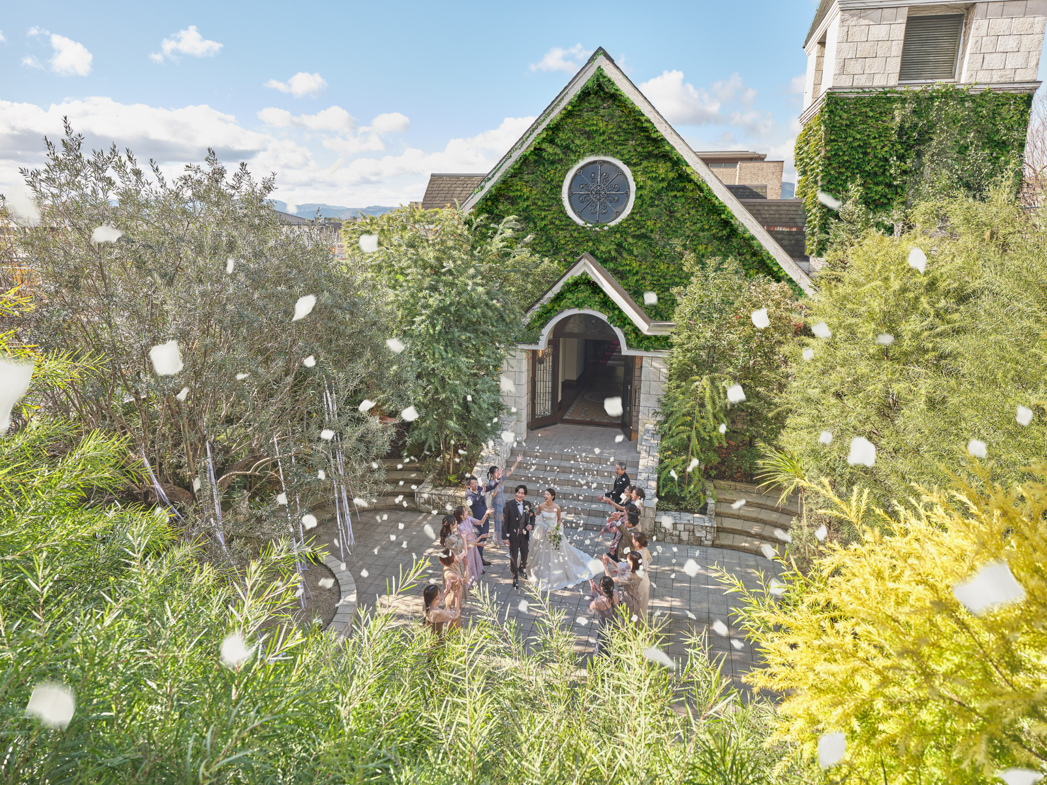 駅から徒歩5秒の好立地、シンボルツリーに見守られたガーデンが広がる本格教会。