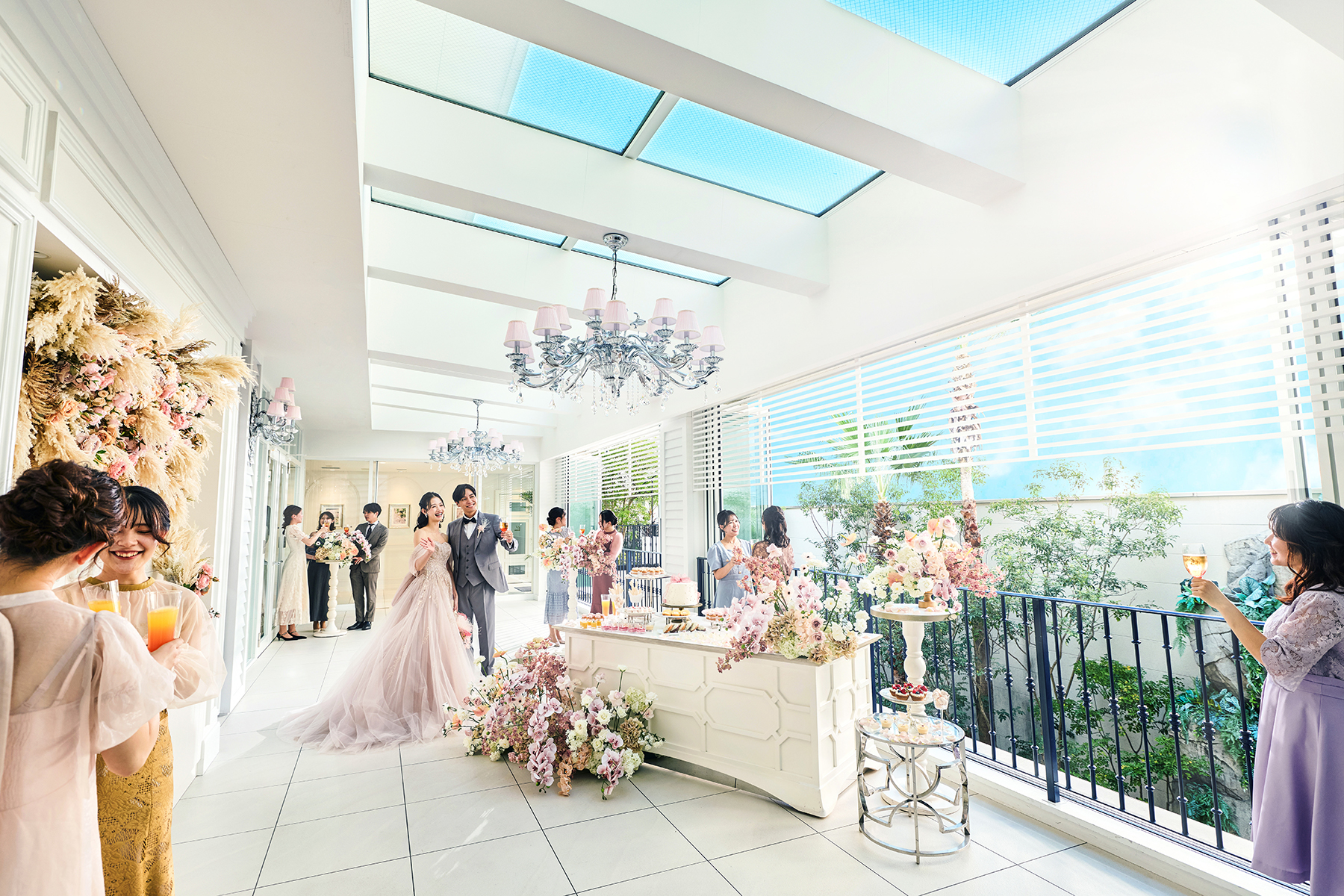 豊かな光と水と緑につつまれた空間は、 おふたりとゲストの心をあたたかくつないでいきます。